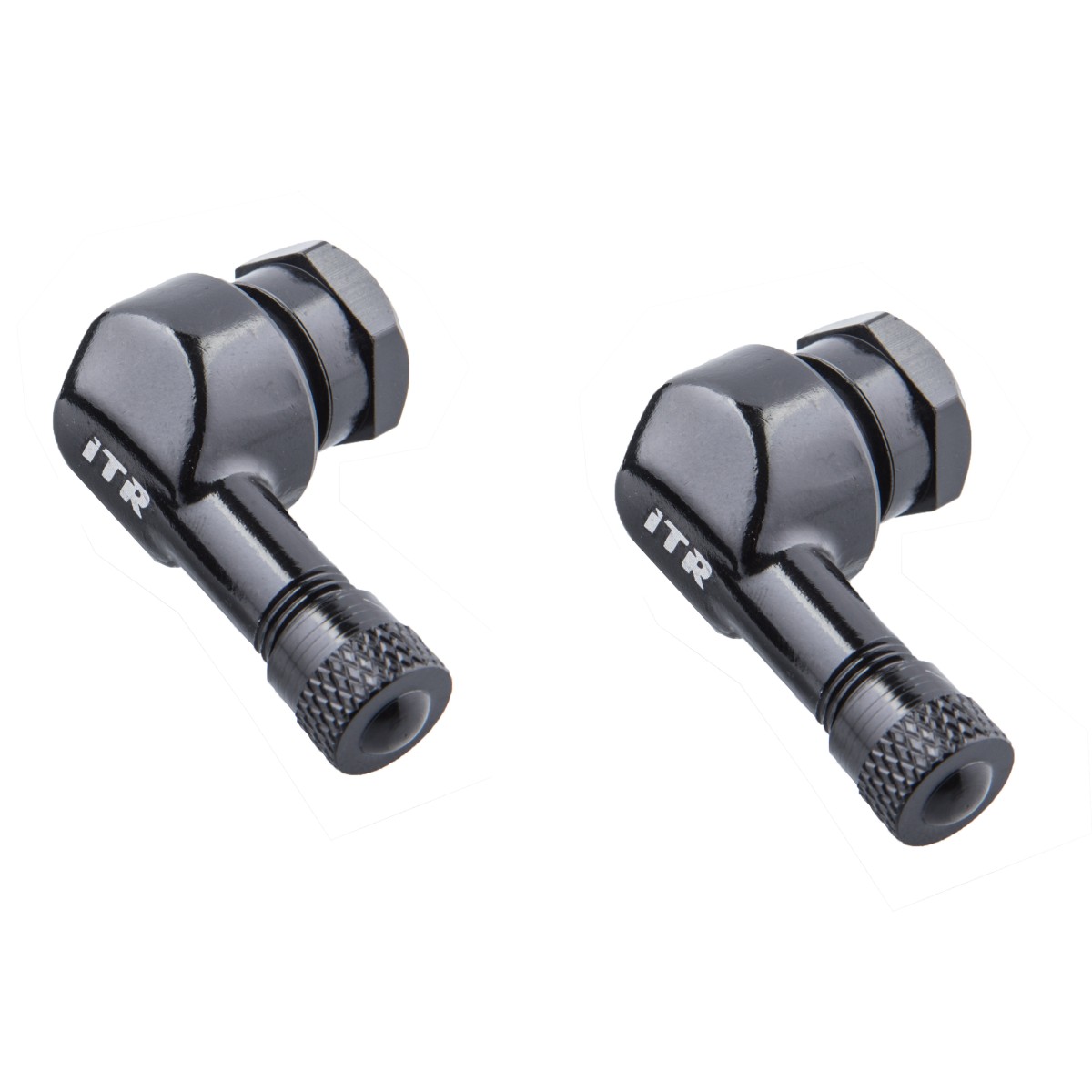 Add style and convenience to your wheels with these Black Aluminum Air Valves (8.3mm). These 90-degree angled valve stems are a premium replacement for standard rubber valves, making tire pressure checks and inflation much easier. The lightweight aluminum construction and sleek black finish are a perfect detail for any custom or performance motorcycle.