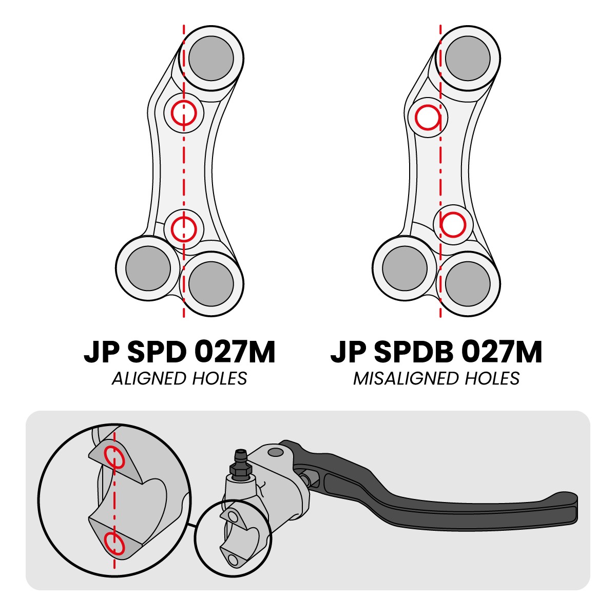 ATTENTION: this handlebar switch is designed to be mounted on the brake master cylinder in place of the original clamp. It is important to check the arrangement of the mounting holes present on your brake master cylinder to choose the correct version.