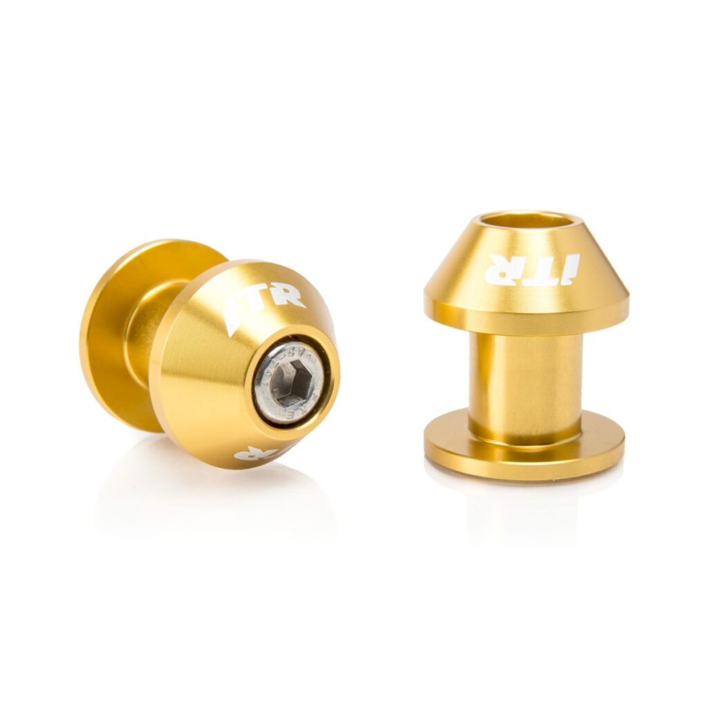 Universal Swing Arm Spools for Secure Stand Mounting. These precision-machined spools provide a solid mounting point for your rear stand, making maintenance and transportation easier. Check compatibility before purchasing to ensure proper fitment. The robust construction ensures they won’t strip or fail under load, while the compact design maintains ground clearance. An essential accessory for any serious rider who performs their own maintenance or transports their bike to the track. The high-quality materials and manufacturing ensure long-lasting reliability.